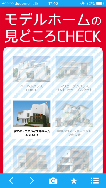 - ※各モデルホームの外観写真にかざすことにより、「喋るモデルホームムービー」と「オススメの部屋をぐるりと見学パノラマビュー」をCHECKできます。