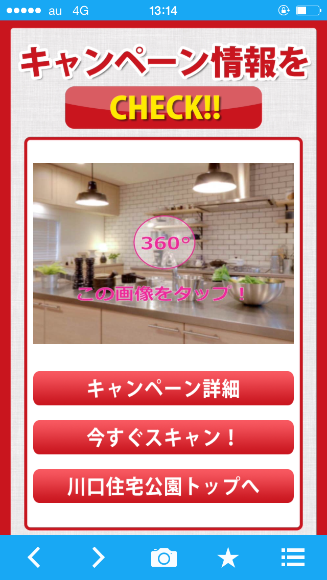 - ABCハウジング川口住宅公園の新聞折込みチラシ中面のモデルホームの外観写真にスマホをかざしてSCANして下さい。