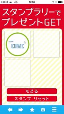 - 「スタンプ特典」をタップして画面をスタッフにお見せください。もれなく、プレゼントがもらえます。