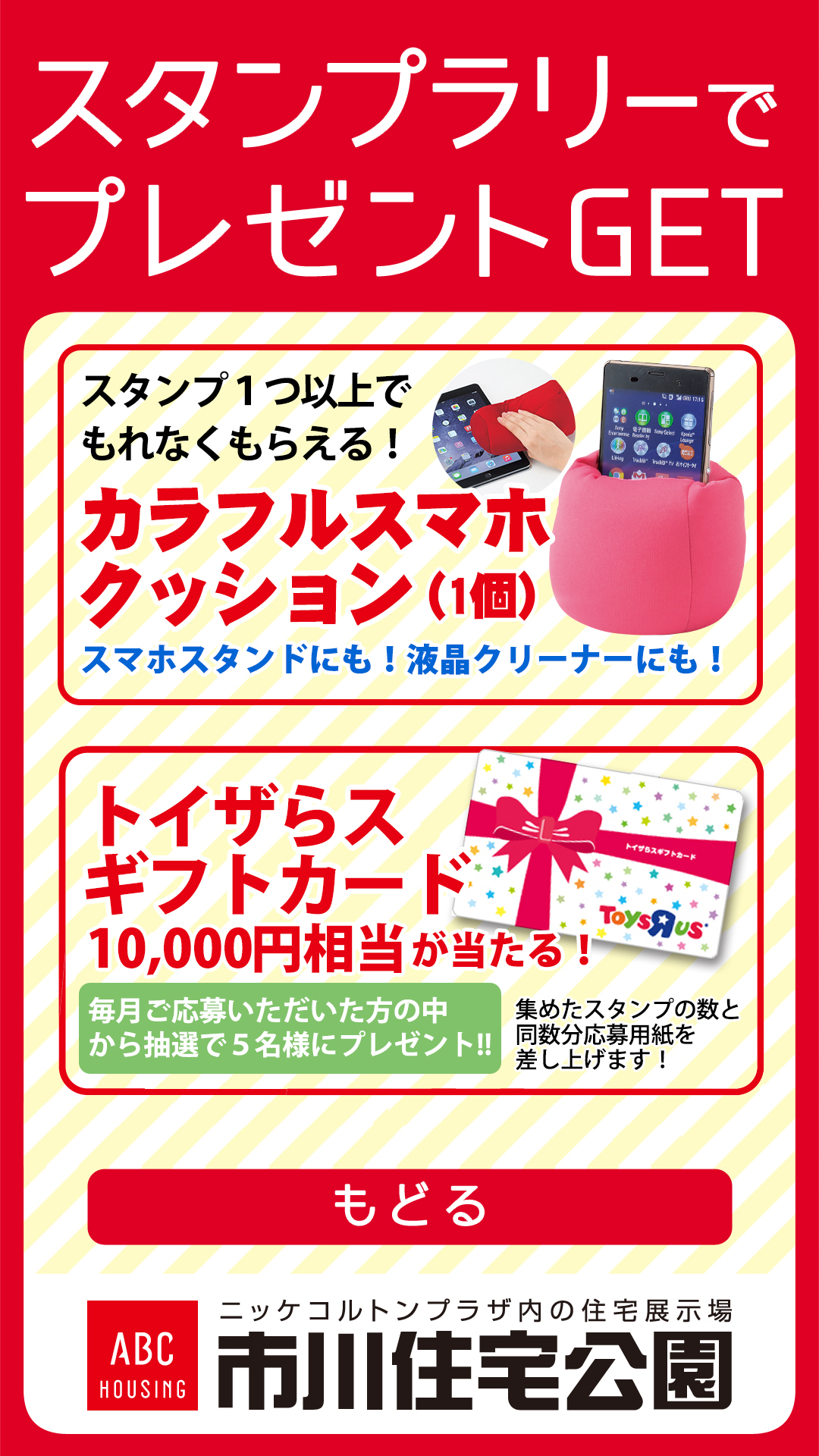 - スマホアプリでモデルホームを訪れてスタンプラリーに参加するともれなくプレゼントがもらえます!