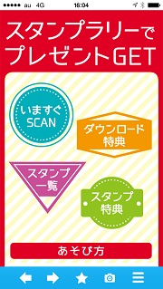 「スタンプ特典」をタップしてプレゼント画面をご提示ください。もれなく、プレゼントがもらえます。